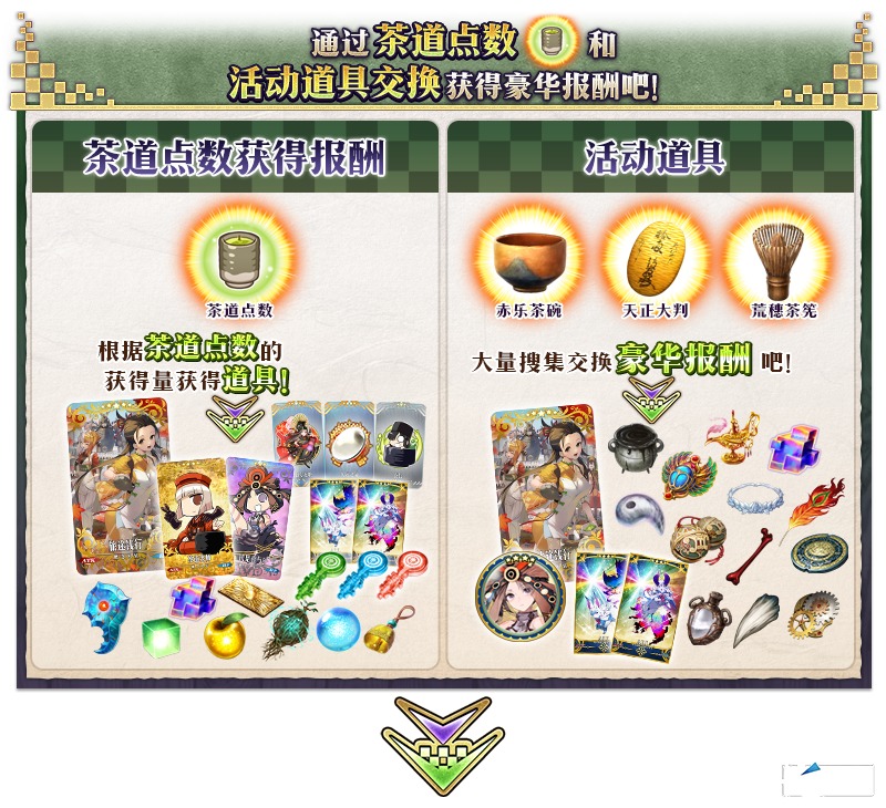 ※活动道具交换期结束后,「赤乐茶碗」「天正大判」「荒穗茶筅」将被删除。