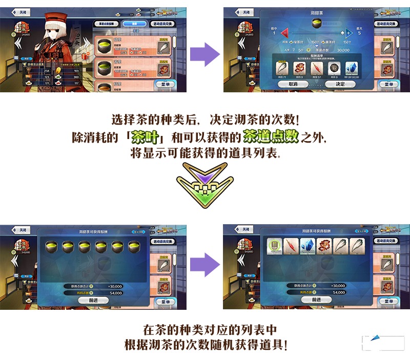 ※在茶的种类对应的列表中,沏茶时将随机获得道具!