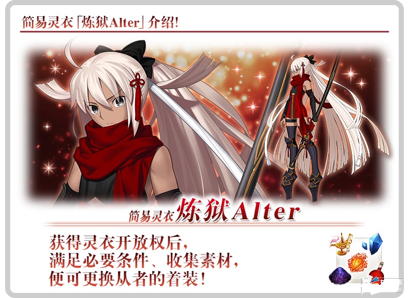 ※此次追加的「★5(SSR)冲田总司〔Alter〕(Alterego)」的简易灵衣除了会改变外观,还会改变部分语音。