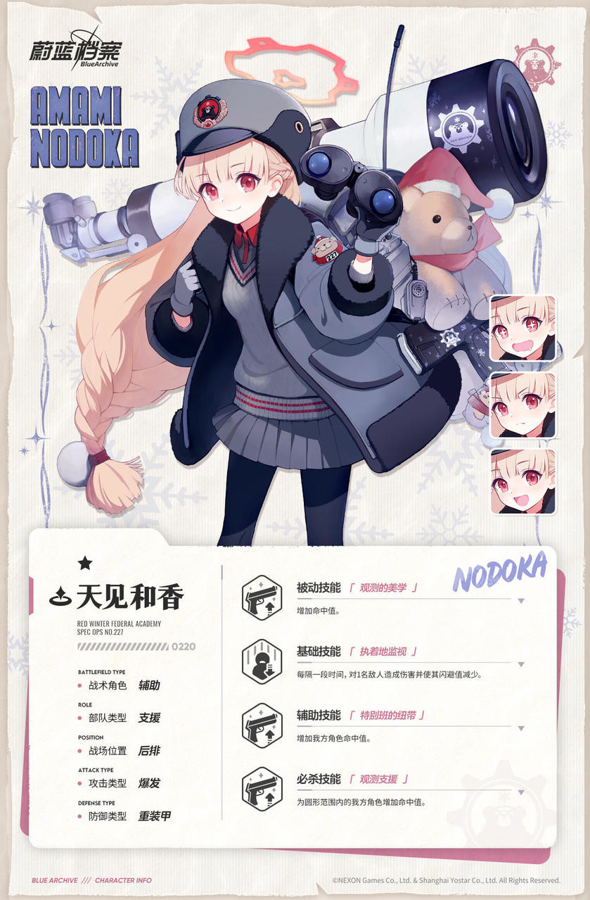 《蔚蓝档案》【新增人物档案】天见和香蔚蓝档案发布于 2023-09-09//////////档案启封////////// ■天见和香受到红冬处分,目前正在旧楼反省的227号特别班成员。被处分的原因是“使用望远镜跟踪骚扰”。她喜欢用自己的双眼观察这个世界上有魅力的事物,即使是沙勒的老师也不例外。在227号特别班中吃了很多苦,节俭到吝啬的生活习惯已经刻在了她的骨子里。“老师的脸真是怎么看都看不腻呢!”