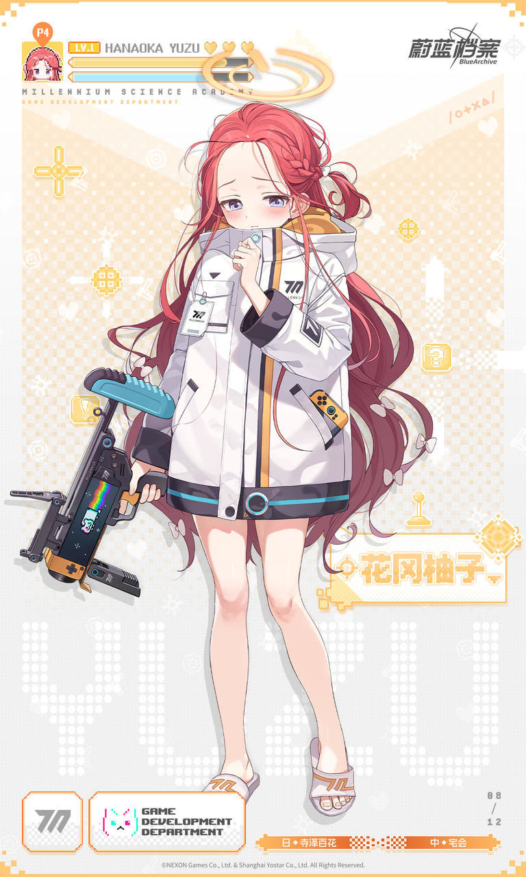 《蔚蓝档案》【新增人物档案】花冈柚子蔚蓝档案发布于 2023-09-11//////////档案启封////////// ■ 花冈柚子千禧年游戏开发部的部长。患有社交恐惧症的少女,害怕跟人接触,大部分时间都在游戏开发部的柜子里度过。但论起对游戏的热情,她不会输给任何人。喜欢制作游戏与玩游戏。“多亏了老师……可以稍微……放心一点了。”