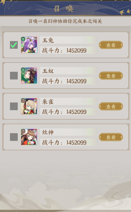 每个格子都有对应的随机事件,包括怪物战斗和每层通关后传至下一层的传送点事件,完成当前格子的事件即可前进到下一格子。当完成每个前进格子的事件后,即完成全部探索,每48小时重置刷新。点击格子后可查看相应的事件。【怪物战斗】按难度由低到高划分击败怪物掉落选择随机增益效果的机会及获得奖励(仙玉、武勋,金币)【召唤点】每次可雇佣1名系统提供的幻神一同闯关(系统提供的神将战力品质随玩家神将当前战力折算)。