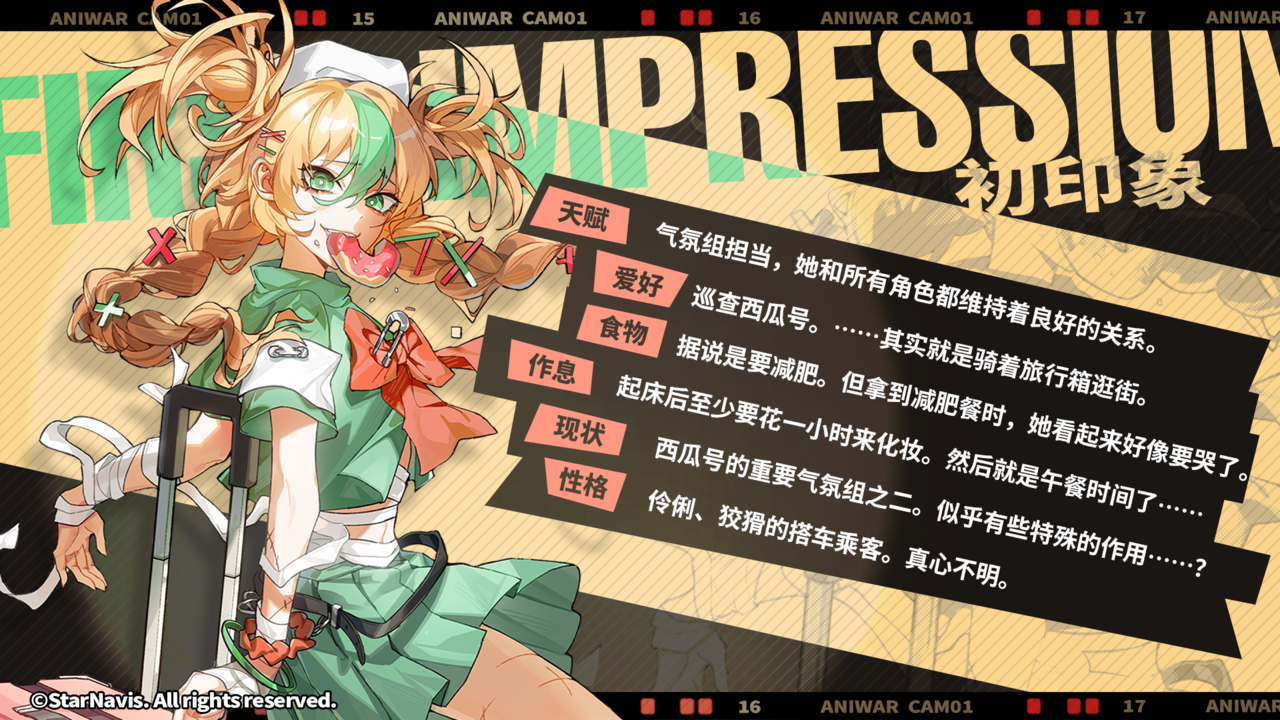 《阿捏瓦》「旅伴档案:百目小枝」阿涅瓦运营发布于 2023-09-19西瓜号的第三位乘客,自称是白心小叶的妹妹。 自诩为美少女,以成为最强偶像为目标……却意外地掌握着下毒、偷窃、开锁等多种危险的生存技巧。 和西瓜号不打不相识,权衡利弊以后,带着“姐姐”白心小叶干脆地投诚了。……忠诚度存疑。 “戴上甜美可爱的面具,今天也是讨人喜欢的小枝❤”