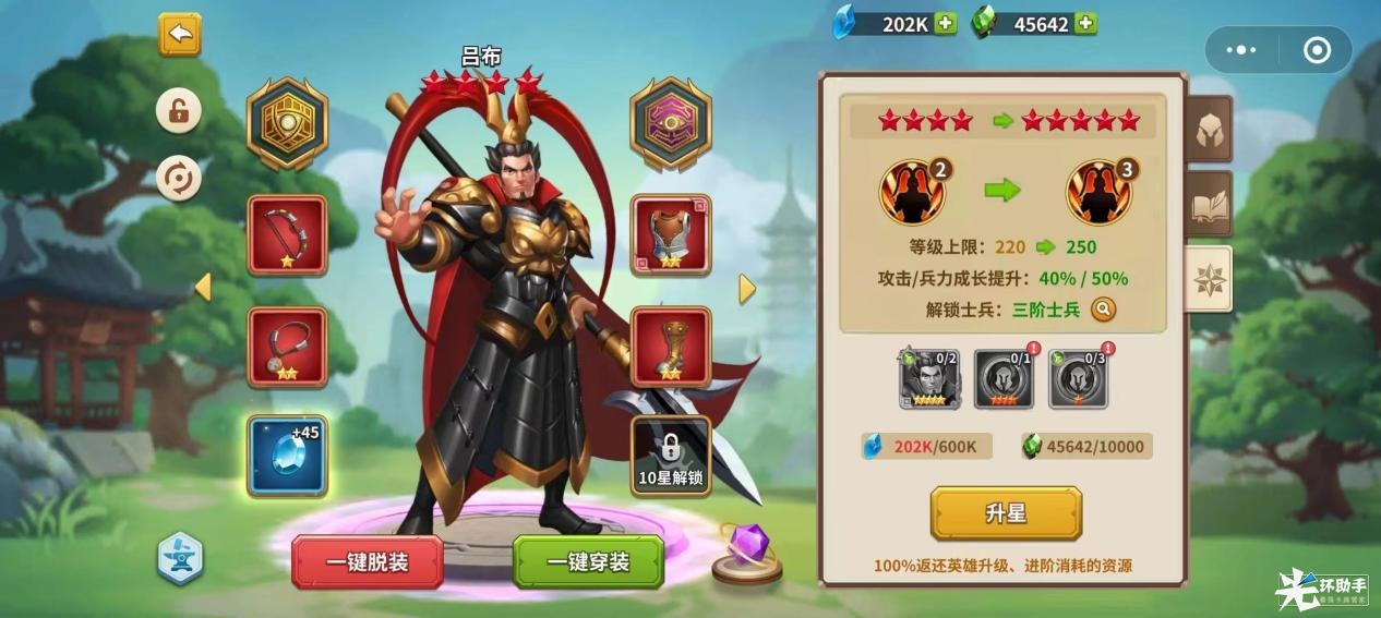 英雄等级提升,攻防基础属性随之增长,兵力同步增长,英雄晋升到某等级,率领的兵种也将自动晋升。一人成军,极大的解放了玩家的精力,让玩家可以更专注地培养英雄,并且根据技能、特性、羁绊、兵种进行搭配组队,在推图、PK、攻城的不同场景,自由搭配不同队伍。