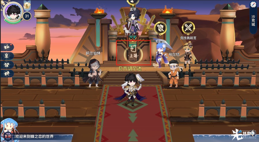 游戏内,主角等级达到13级时,会开启竞技场挑战系统。首次前往沙荒城后,点击主界面右下角【玩法入口】按钮后,就可以通过【玩法入口】界面快捷进入。