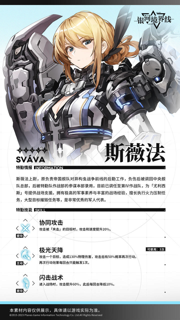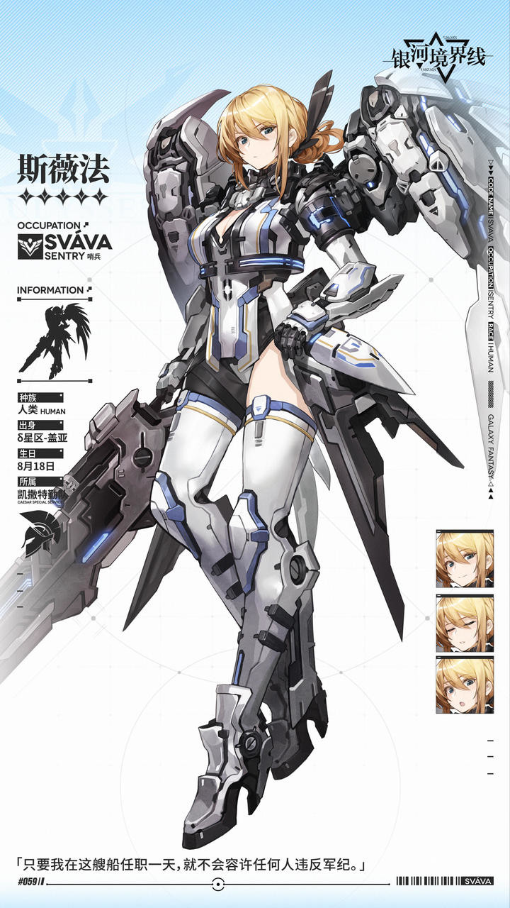 斯薇法上尉,原负责帝国舰队对异构虫战争前线的后勤工作,负伤后被调回中央舰队总部,后被特勤队作战部的参谋本部录用,目前已调任至第Ⅳ作战队,为「尤利西斯」号提供战场支援。拥有极高的军事素养与丰富的战场经验,擅长执行火力压制任务,大型目标摧毁任务等,是非常优秀的军人代表。