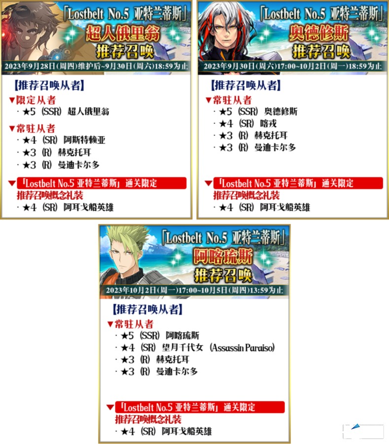 ◆『「Lostbelt No.5 亚特兰蒂斯」推荐召唤』相关的注意事项◆