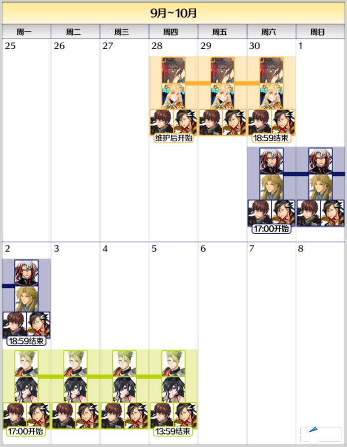 时间:2023年9月28日(周四)维护后~10月5日(周四)13:59为止