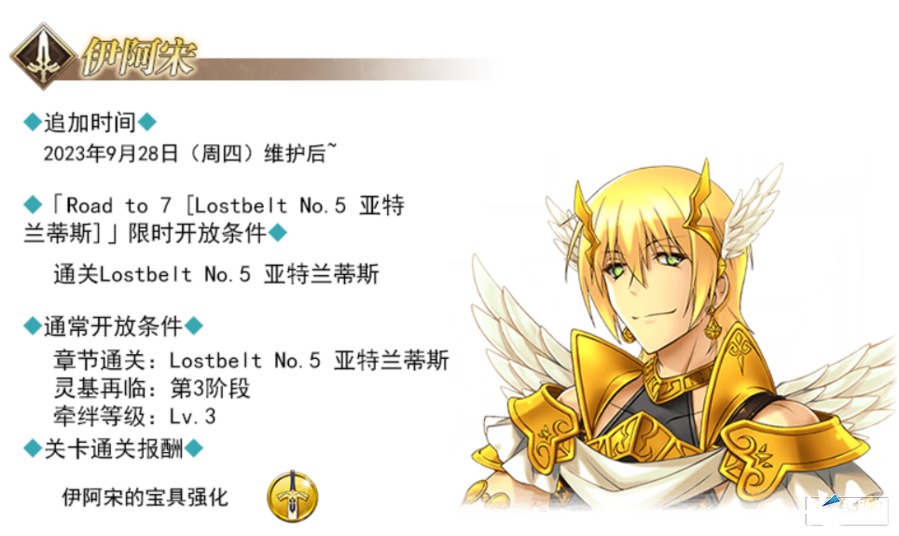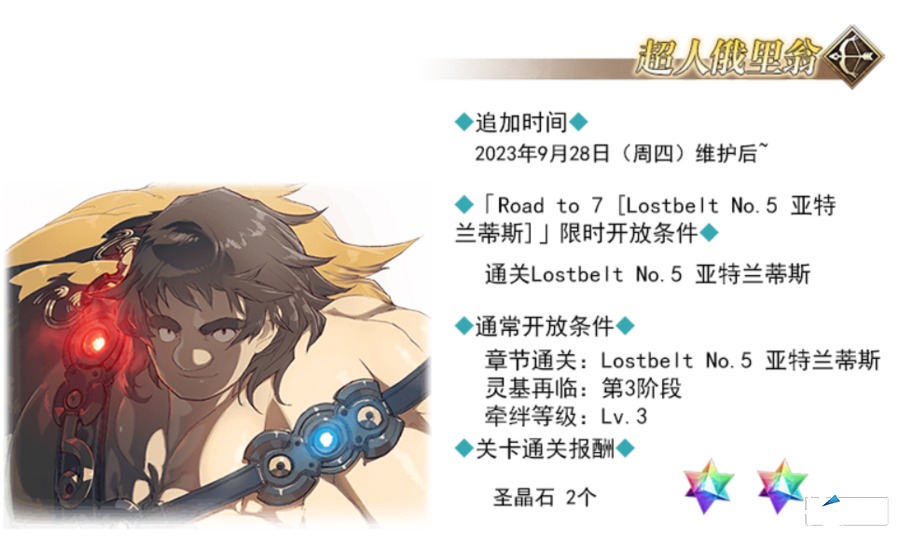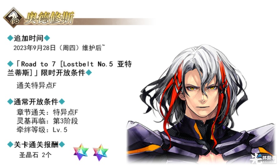 ※「Road to 7 [Lostbelt No.5 亚特兰蒂斯]」的限时开放时间结束后,「★1(C)伊阿宋」「★5(SSR)超人俄里翁」「★5(SSR)奥德修斯」的「幕间物语」的开放条件将变回通常的开放条件。