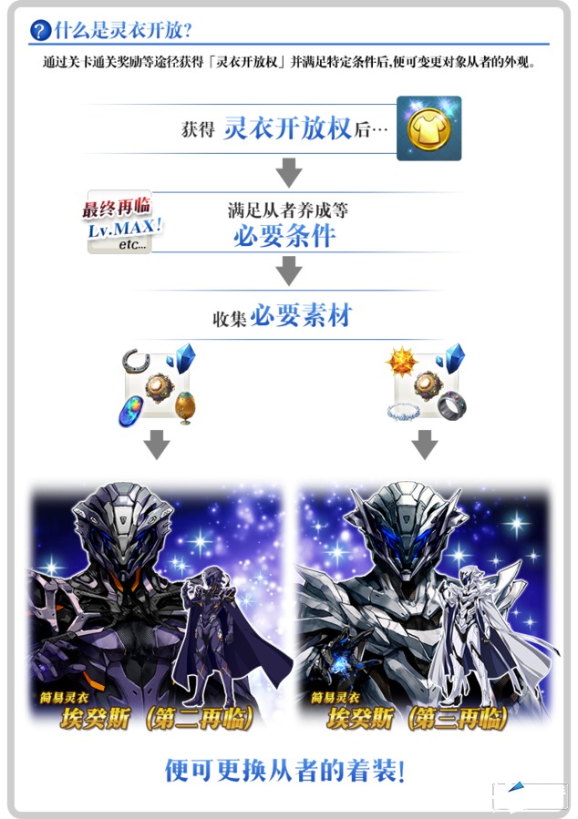 ※「灵衣开放」仅会改变从者的外观,对职阶或数值等无影响。