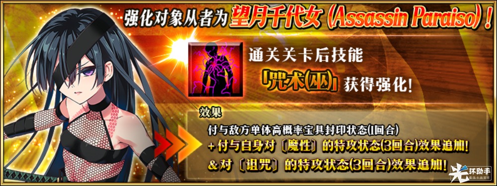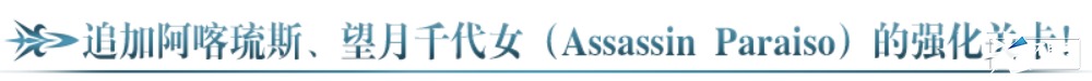 强化「★5(SSR)阿喀琉斯」「★4(SR)望月千代女(Assassin Paraiso)」的特别关卡「从者强化任务」将在迦勒底之门中作为常驻关卡追加。