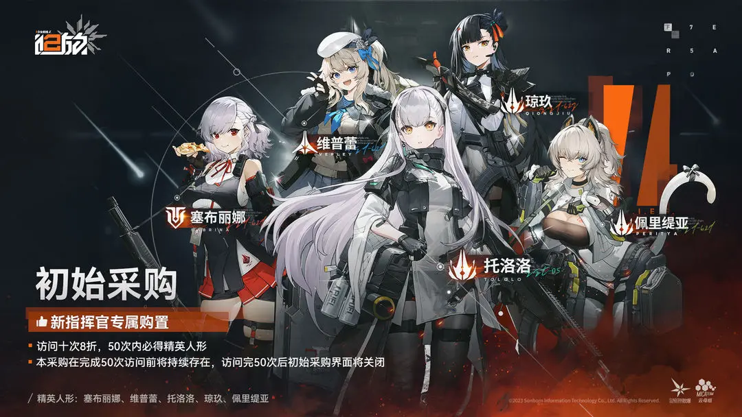 《少女前线2:追放》【引力测试】「初始采购」活动即将开放!白纸扇发布于 2023-09-27尊敬的指挥官,本次引力测试将开放【初始采购】活动。 【初始采购】为新指挥官专属购置。访问十次8折,50次内必得精英人形。 本采购在完成50次访问前将持续存在,访问完50次后初始采购界面将关闭。 访问详情可在引力测试开启后前往游戏内查看。