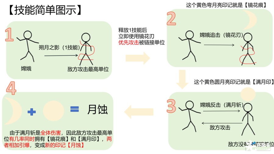 ◆嫦娥通常行动或者被链子外的敌人攻击时,将使用满月斩造成伤害叠加【满月印】印记。
