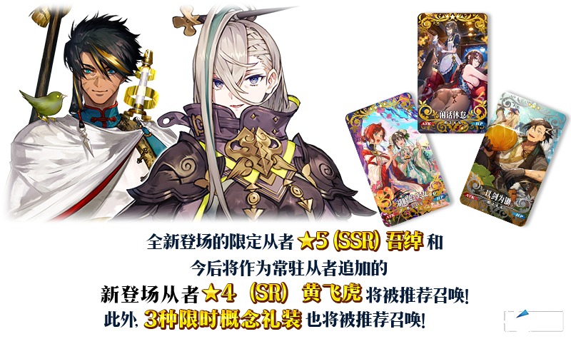 推荐召唤限时活动「108人的万圣节·叛乱!~小龙娘水浒演义~」相关从者中全新登场的限定从者「★5(SSR)吾绰」和3种限时概念礼装将被推荐召唤!