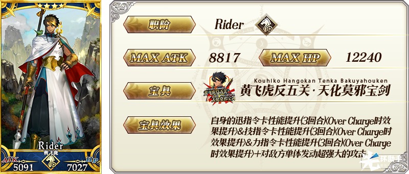 ※以上的「★4(SR)黄飞虎」的圣肖像为灵基再临第2阶段。
