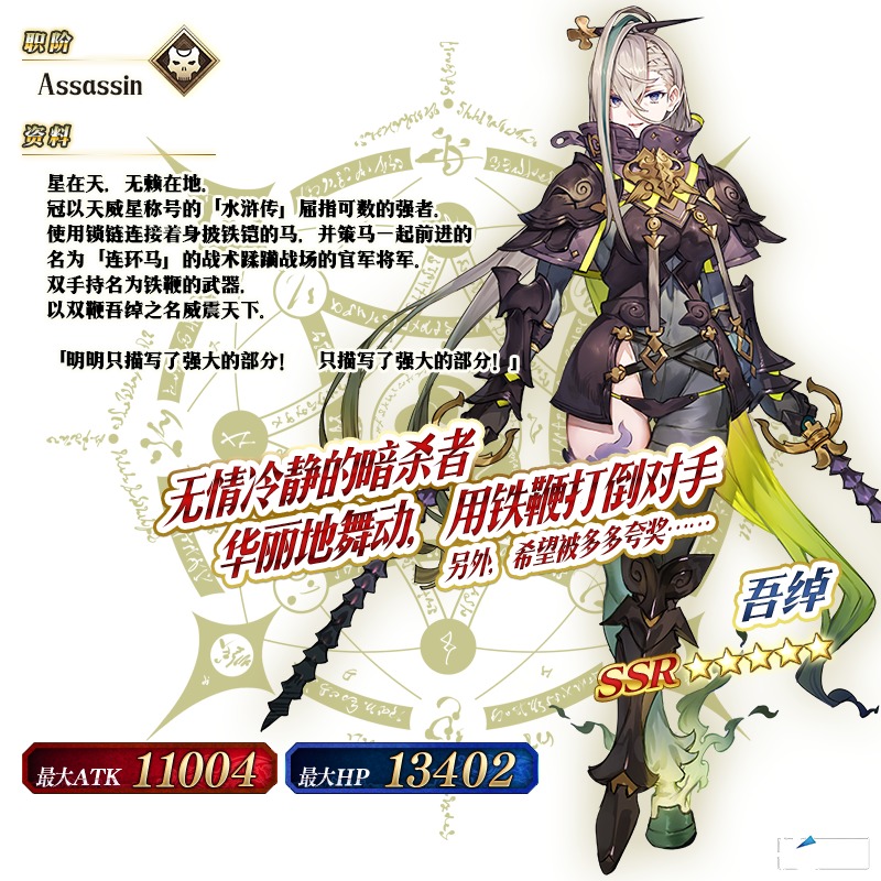 ※以上的「★5(SSR)吾绰」的圣肖像为灵基再临第2阶段。