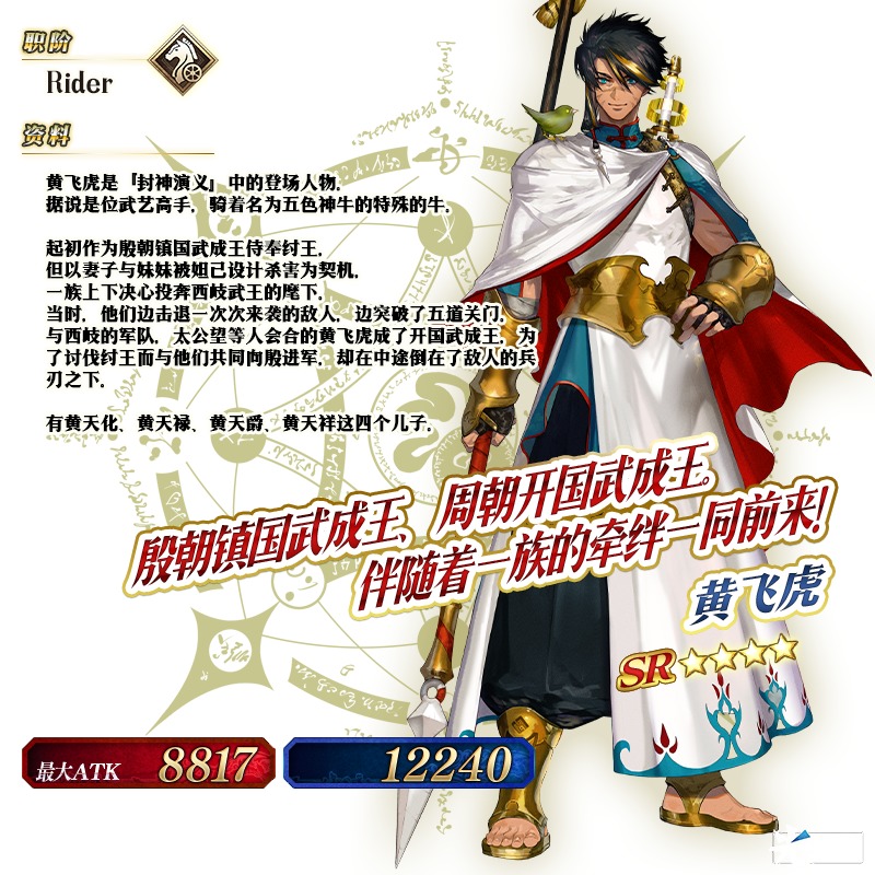 此外,同样新登场的从者「★4(SR)黄飞虎」也将被推荐召唤!
