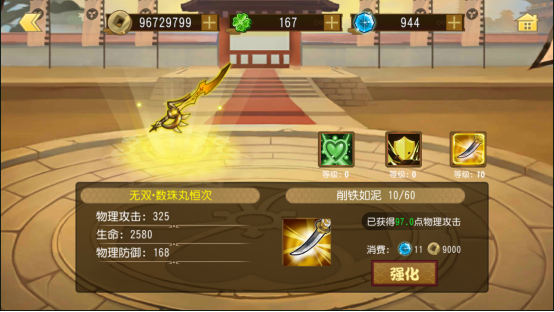 强化神兵,强化神兵技能也可以极大提升战力。