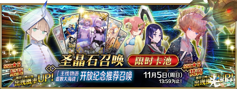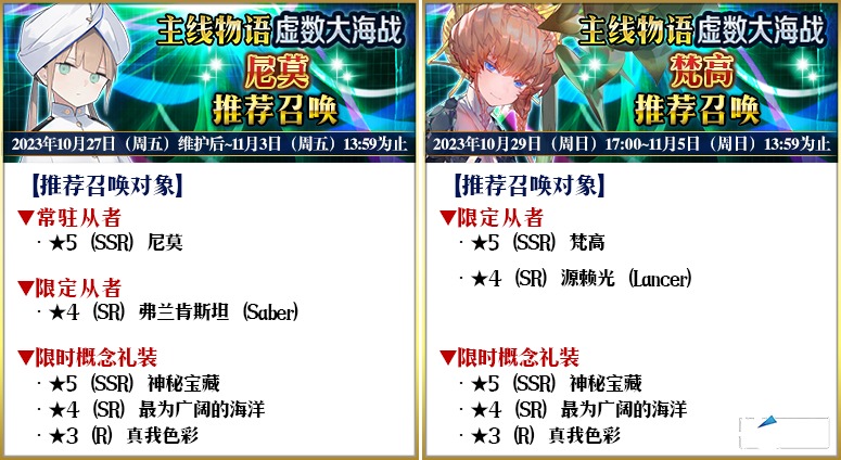 「主线物语 虚数大海战 幻想急航 ~上浮吧鹦鹉螺号~」相关从者中包含限定从者「★5(SSR)梵高」的4骑从者的2种召唤卡池开放!