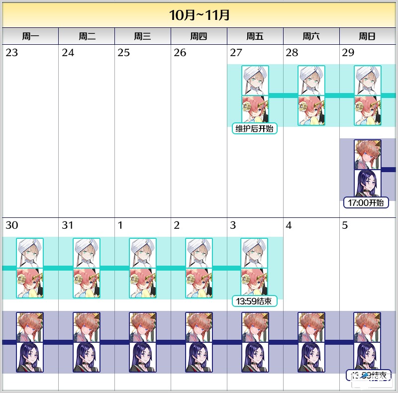 时间:2023年10月27日(周五)维护后~11月5日(周日)13:59为止
