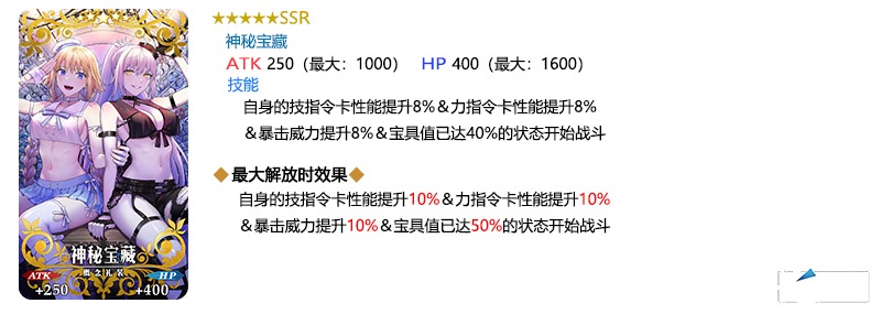·进行11次召唤时满足「确定召唤」机能条件的情况下,进行的11次召唤中必定获得1骑推荐召唤对象的★5(SSR)从者。此时,11次召唤中保障的★4(SR)及以上卡牌以及1骑★3(R)及以上从者也另外有效。