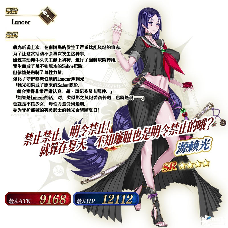 ※以上的「★4(SR)源赖光(Lancer)」的圣肖像为灵基再临第2阶段。