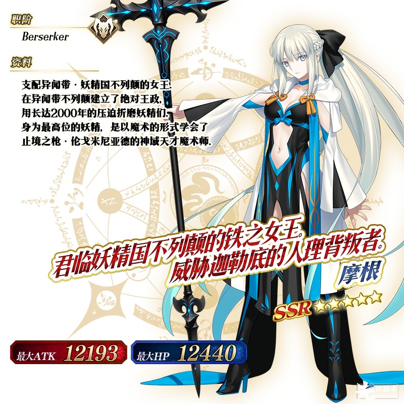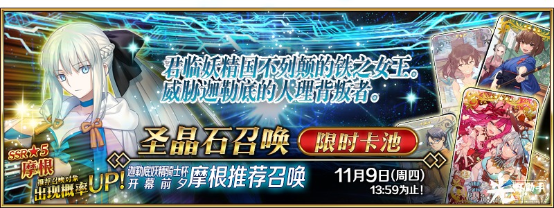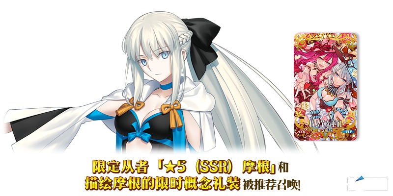 限时活动「迦勒底妖精骑士杯~第二代的凯旋~」的相关从者中限定从者「★5(SSR)摩根」被推荐召唤!