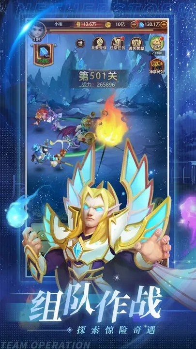 这是一款以魔幻题材的放置卡牌手游。游戏采用了魔幻世界的独特画风,玩家可以在游戏中收集并培养各类经典英雄,并通过放置战斗的方式进行战斗。