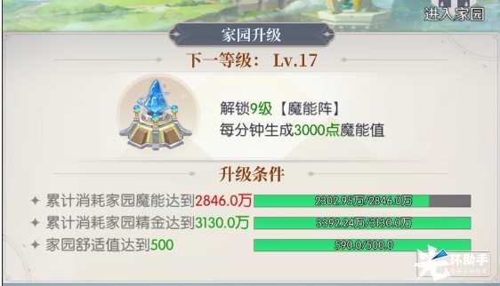 在云上大陆,每一位冒险者都有一个自己的家园,家园内可以生产精金、魔能等材料,家园的等级越高,冒险者们的收益也有越高,那么升级家园都需要哪些条件呢?