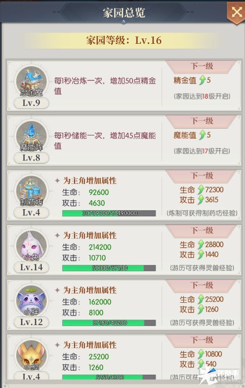 1.可以提升冶金室和魔能阵,从而提升精进和魔能的产出数量,家园等级越高,产出的精金和魔能也越高。