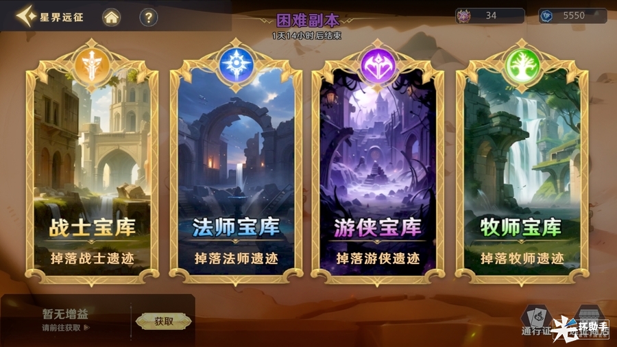 困难难度的星界远征则需要玩家通过14章后才会解锁,在进行挑战前玩家首先要对四个不同区域的星界副本进行选择,每个区域对应相对的遗迹,但难度和副本的怪物配置是相同的,玩家只要挑战自身所需遗迹的对应区域即可。在困难难度中除了副本难度的直线上升外每关都还有额外的胜利条件,玩家必须在满足胜利条件的情况下击败敌人才算通关。