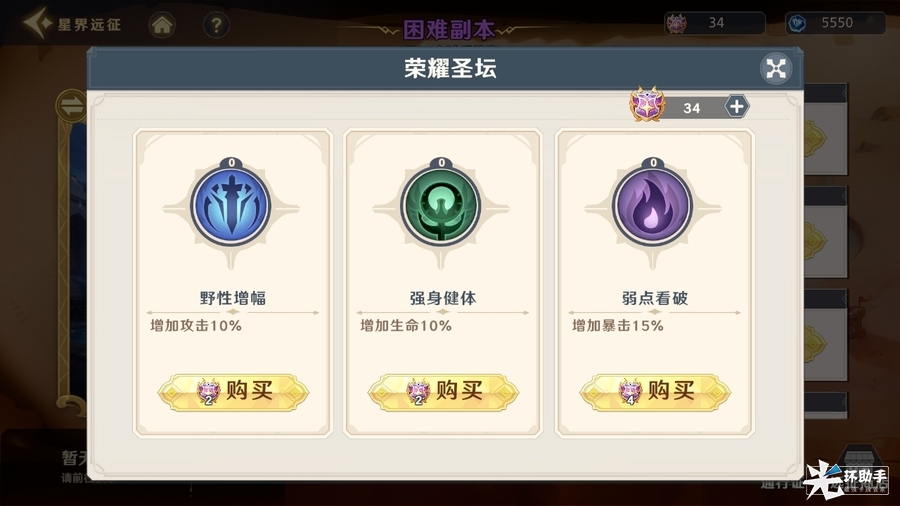困难难度的星界远征对玩家来说确实是一个不小的挑战,所以在挑战过程中我们需要根据胜利条件组出最适合的阵容来进行挑战(比如有生存条件的关卡就搭配生存能力强的英雄),当你发现战斗失败后可以根据失败的情况在荣耀圣坛购买BUFF加成,缺生存就买生命BUFF,缺输出就买输出BUFF,同时不要忘记可以将你最强的装备换给现在需要使用的英雄,强力的装备对英雄的提升是非常大的。通关困难远征后玩家可获得大量的钻石、许愿币、遗迹水晶、远征币和遗迹碎片等。