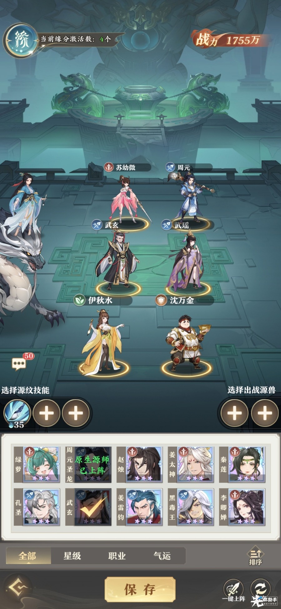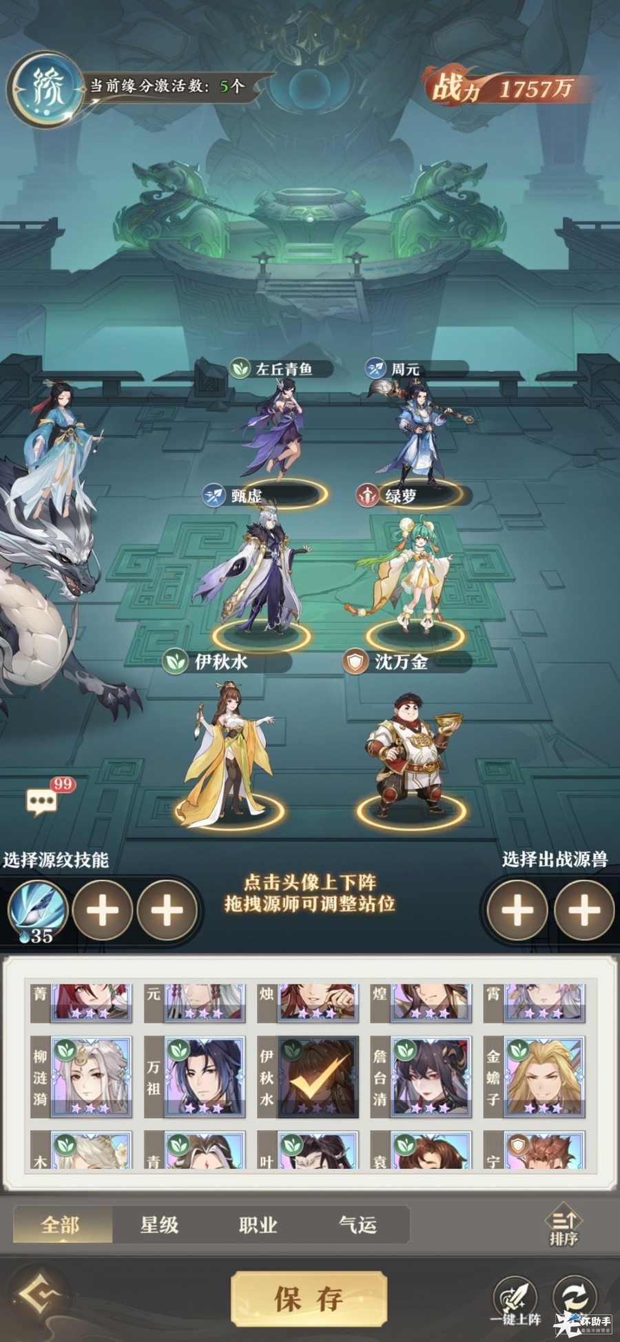 阵容1:沈万金+左丘青鱼+周元+伊秋水+绿萝+甄虚