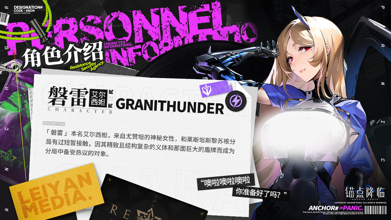 《锚点降临》档案解密 |全新角色「磐雷」登场元雅发布于 2023-12-01《锚点降临》12月21日新版本开启,全新角色「磐雷」即将登场“曾经有不怕死的家伙尝试用围攻来破坏艾尔西妲的地盘,但在那巨盾面前,没人能通过她的防线……没有人。”