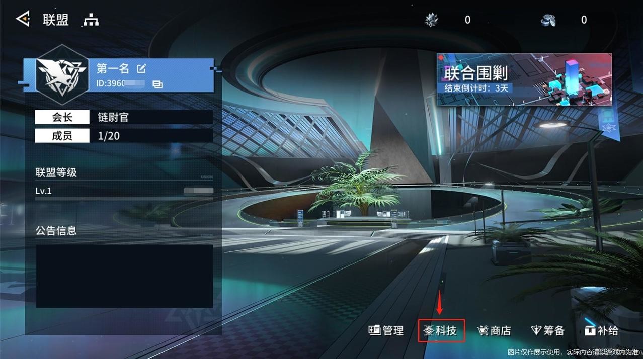 加入联盟后,在“联盟主界面”右下方点击“科技”进入【联盟科技】养成界面;