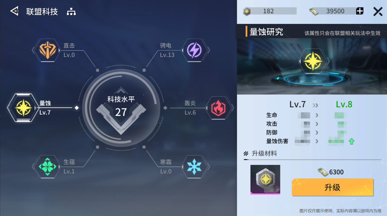 不同核心科技的等级提升需要消耗对应属性的核心道具,该道具可以通过消耗脆质晶髓在联盟商店中兑换获得(该核心道具将在1.5版本更新时同步上架)。