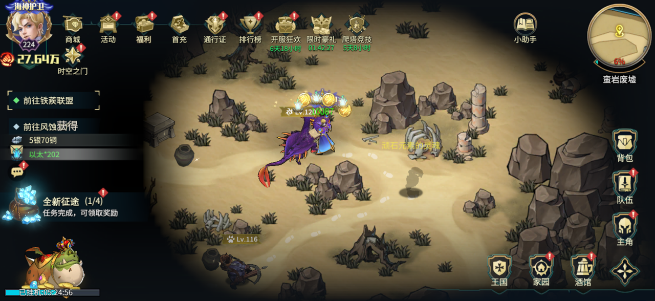 获取:拾取黑海岸上的漂流物,有概率获得宝物。每天12点潮水退去又会出现新的漂流物。