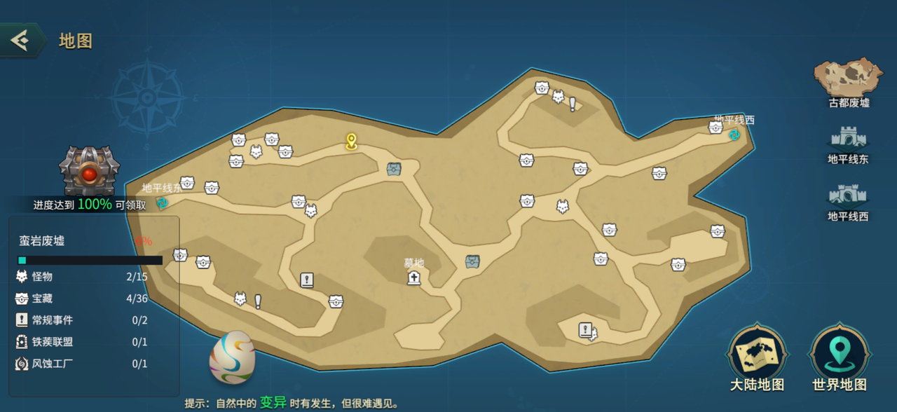 获取:古都废墟地图会随机刷出一头沙地巨蛇,普通怪为两只头,变异怪为三只头。每天都会随机刷新一只,当刷出变异巨蛇,消灭后即可完成彩蛋。