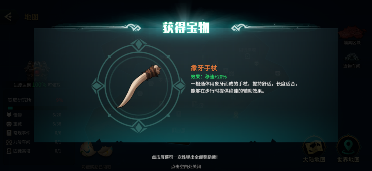奖励:获得宝物象牙手杖(效果:移速+20%)。