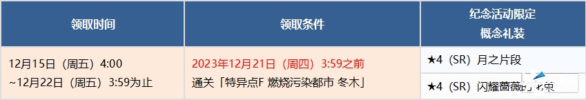 2023年12月15日(周五)4:00~12月22日(周五)3:59为止