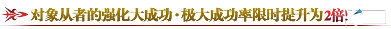 以下时间段内,强化特定从者时,大成功(经验值2倍奖励)·极大成功(经验值3倍奖励)的发生率限时提升为2倍!