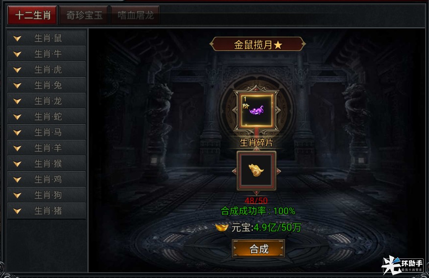 生肖系统:分为12个,每一个最高可以升至三阶,每个生肖都拥有着多种属性,装备12个还可以激活百分比套装属性,生肖可以通过生肖地图击杀生肖BOSS掉落获取,也可以通过合成系统,使用生肖碎片合成;