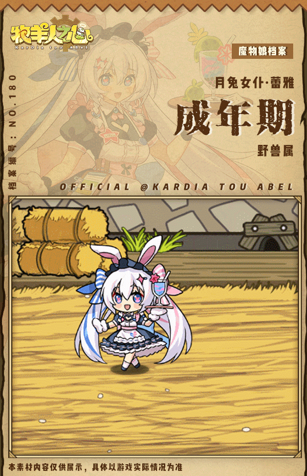 《牧羊人之心》新魔物登场 - 月兔女仆·蕾雅伊辛贝露发布于 2024-01-10取得完整力量的蕾雅,这就是她在故乡本来的面貌“欸?一定要说那句台词嘛...?既然是驯养师的要求,那就......代表血月消灭你们!”新魔物将于1月11日维护后与各位驯养师见面喵!