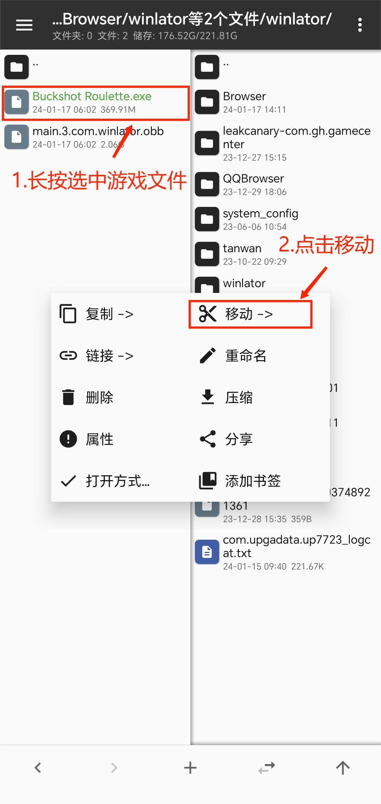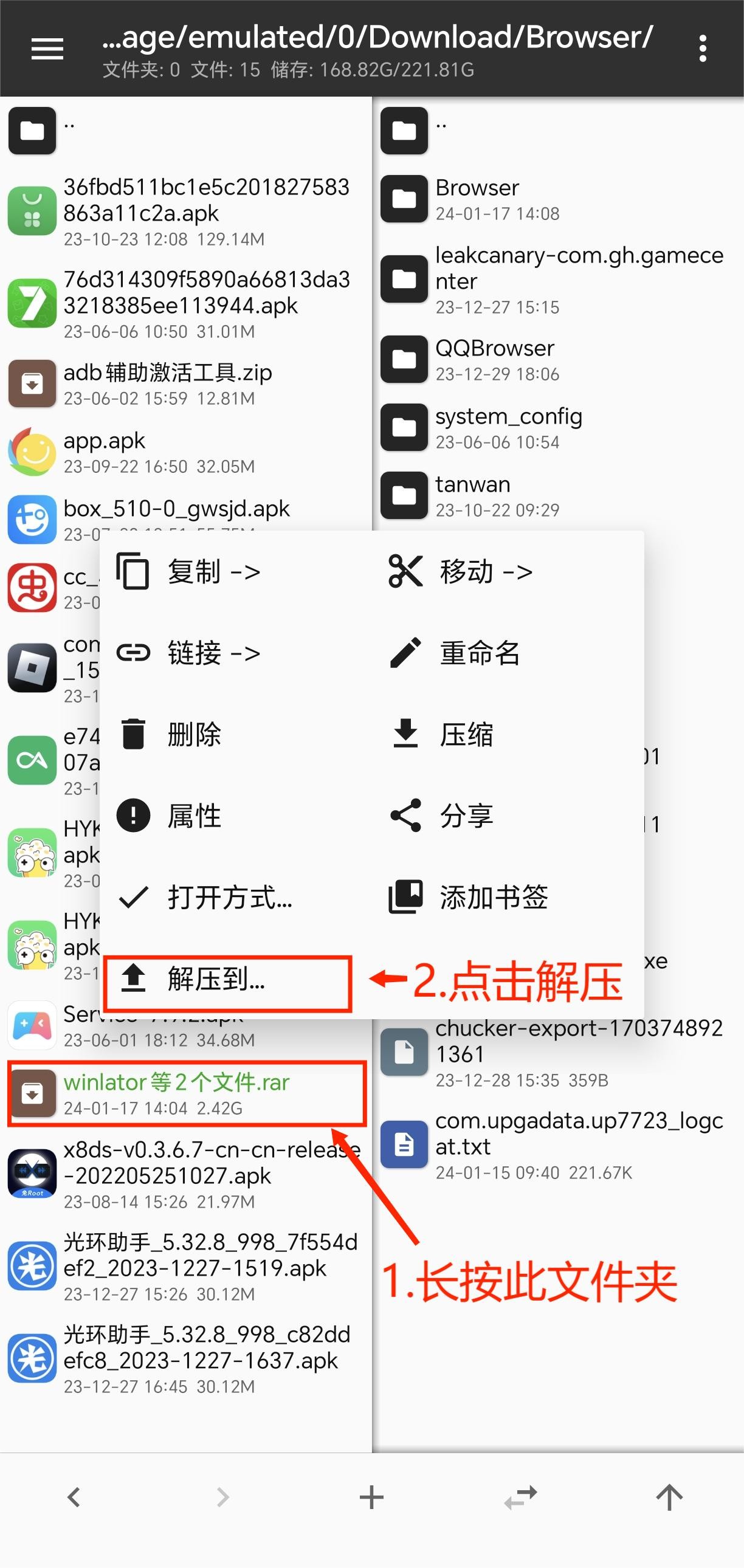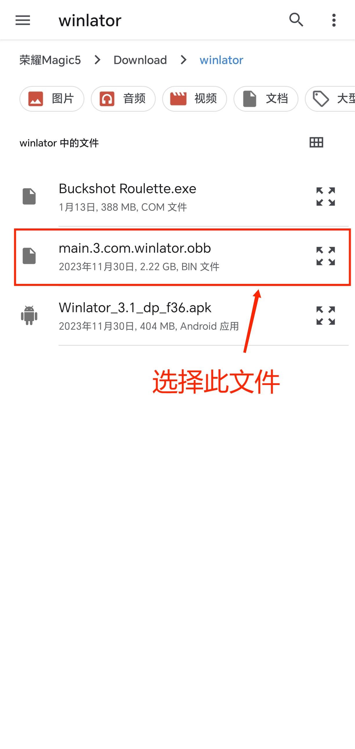 4、打开winlator模拟器,将obb文件导入,等待解压