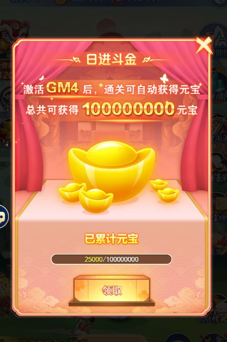 1、GM等级未到GM4之前,推图所获得元宝都会存入日进斗金中,GM等级满足后可以领取之前存入的元宝,领取之后推图所获得的元宝将在通关奖励处直接发放