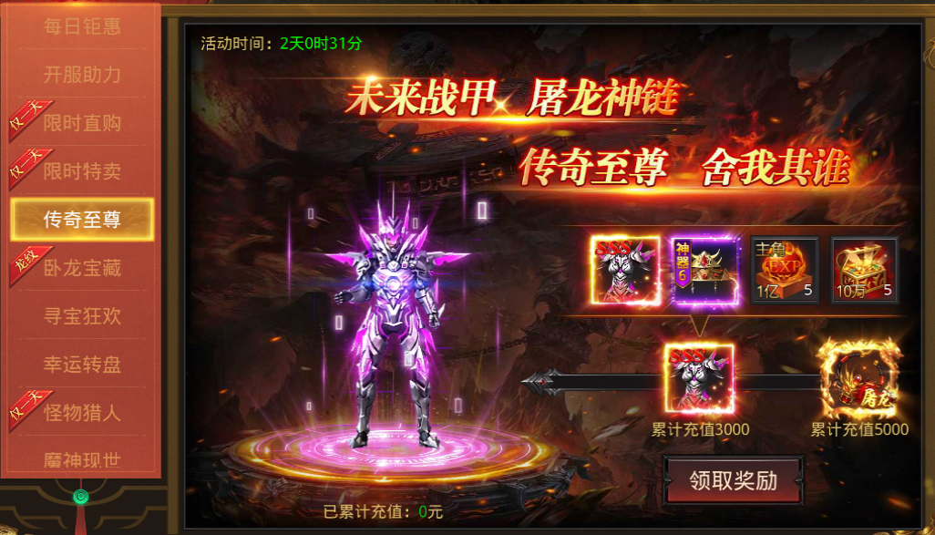 7、充值送未来战甲,屠龙神链和SSSS级幻化暗炎凤凰