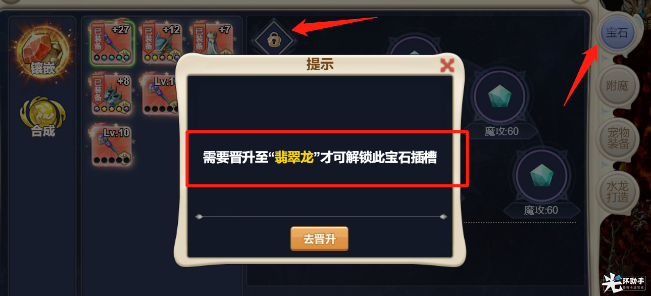 每次晋升等级提升,都会提升一定数量的进阶等级上限。提升到最高等级时,还会额外增加一个宝石插槽