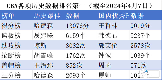 小助理同时整理了CBA部分数据的里程碑,辅助经理人评估球员的生涯表现: