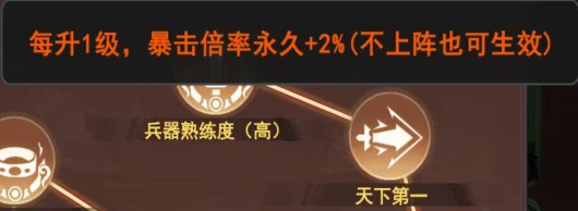 天下第一(角色一级解锁):每升1级,暴击倍率永久+2%,角色等级越高,基础暴击倍率越高。