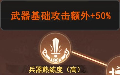 首先是兵器熟练度-武器(角色一级解锁),可以提高武器装备50%的基础攻击力,可以极大提高装备属性,为自身提供高额攻击力加成。
